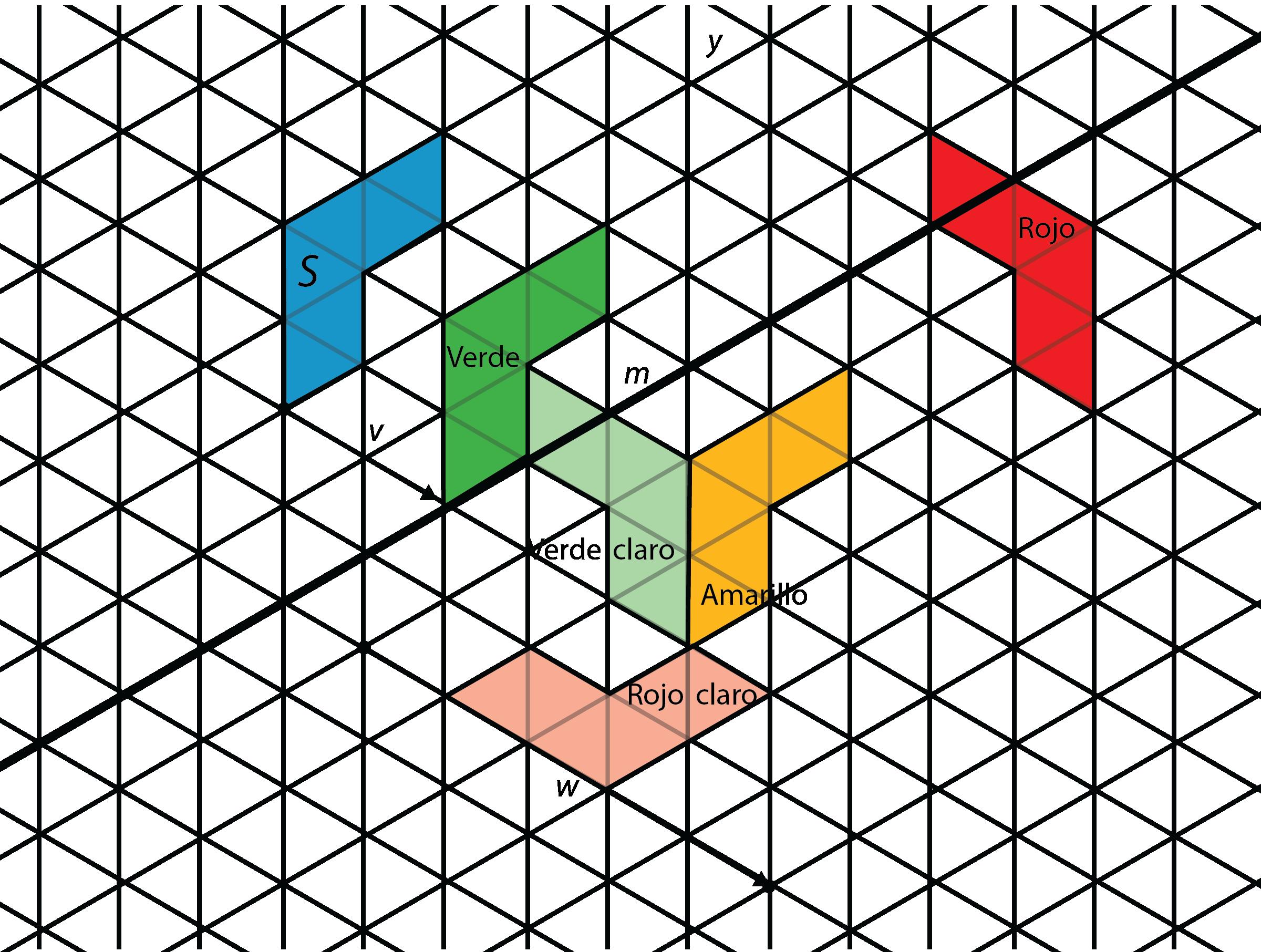 Construye un teselado con simetría de rotación, reflexión y traslación.
