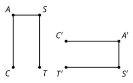 A. Dibuja la imagen de la figura CAST después de una rotación en sentido horario alrededor del punto T usando el ángulo CAS y luego una traslación por el segmento de recta dirigida AS