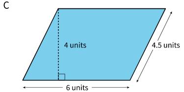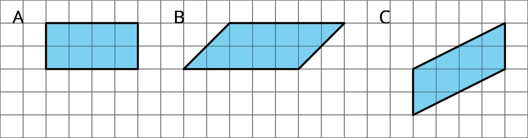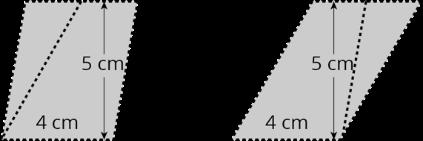 Además, se espera que los estudiantes justifiquen afirmaciones sobre la base, la altura o el área de formas, generalicen sobre las características de paralelogramos y polígonos, interpreten información relevante para hallar el área superficial de prismas rectangulares y representen las medidas y unidades de figuras de 2 y 3 dimensiones. A lo largo de la unidad, los maestrps pueden apoyar la comprensión matemática de los estudiantes ampliando (no simplificando) el lenguaje utilizado para todos estos propósitos a medida que los estudiantes demuestran y desarrollan ideas.