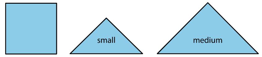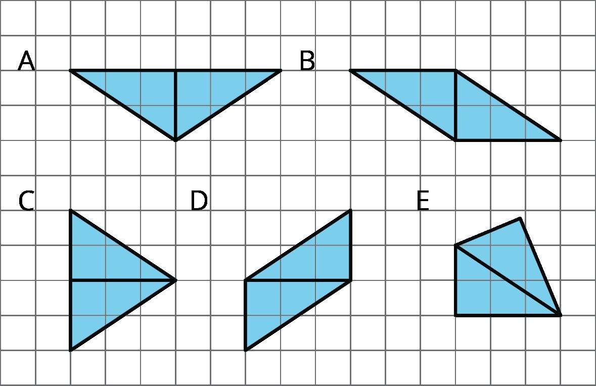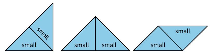 En octavo grado los estudiantes entenderán «copia idéntica de» como «congruente con» y comprenderán la congruencia en términos de movimientos rígidos, es decir, movimientos como la reflección, la rotación y la traslación. En 6.º grado, los estudiantes no tienen otra forma de comprobar la congruencia que la inspección, pero no es práctico recortar y apilar cada par de figuras que se ven. El papel de calco es una herramienta excelente para verificar que las figuras «coinciden exactamente» y los estudiantes deben tener acceso a esta y otras herramientas en todo momento en esta unidad. Por lo tanto, cada plan de lección sugiere que cada estudiante tenga acceso a un juego de herramientas de geometría, que contiene papel de calco, papel cuadriculado, lápices de colores, tijeras y una ficha para usar como regla o para marcar ángulos rectos. Proporcionar a los estudiantes estos juegos de herramientas les da la oportunidad de desarrollar habilidades para seleccionar las herramientas adecuadas y utilizarlas estratégicamente para resolver problemas (MP5). Tenga en cuenta que incluso los estudiantes en un aula mejorada digitalmente deben tener acceso a estas herramientas; las aplicaciones y simulaciones deben considerarse adiciones a sus juegos de herramientas, no reemplazos de herramientas físicas. En este grado, todas las figuras se dibujan y etiquetan de modo que las figuras que parecen congruentes realmente lo sean; en grados posteriores, cuando los estudiantes tengan las herramientas para razonar sobre figuras geométricas con mayor precisión, tendrán que aprender que la inspección visual no es suficiente para determinar la congruencia. Obsérvese también que todos los argumentos expuestos en esta unidad pueden (y deben) hacerse más precisos en grados posteriores, a medida que se profundiza en la comprensión geométrica de los estudiantes.