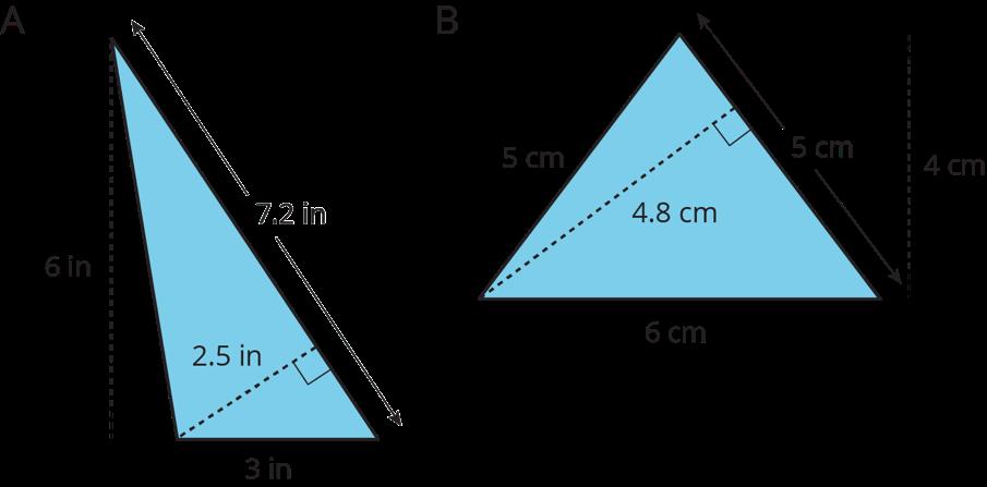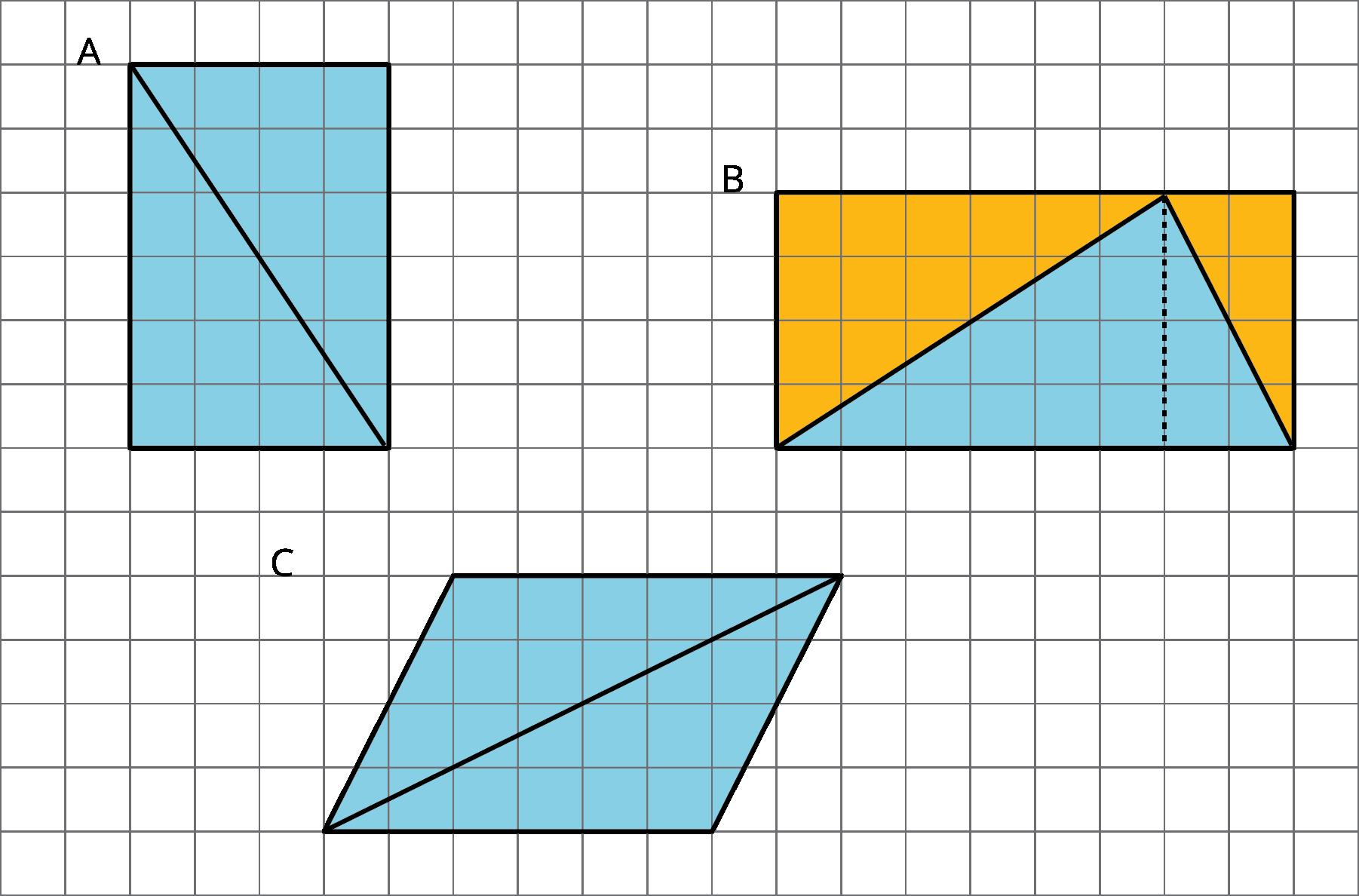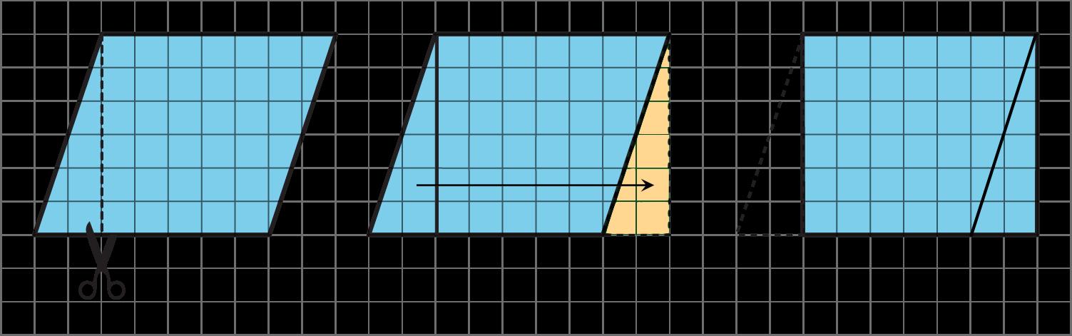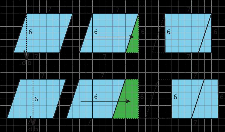 • estrategias utilizadas para hallar áreas de paralelogramos (lección 4) y triángulos (lección 8)