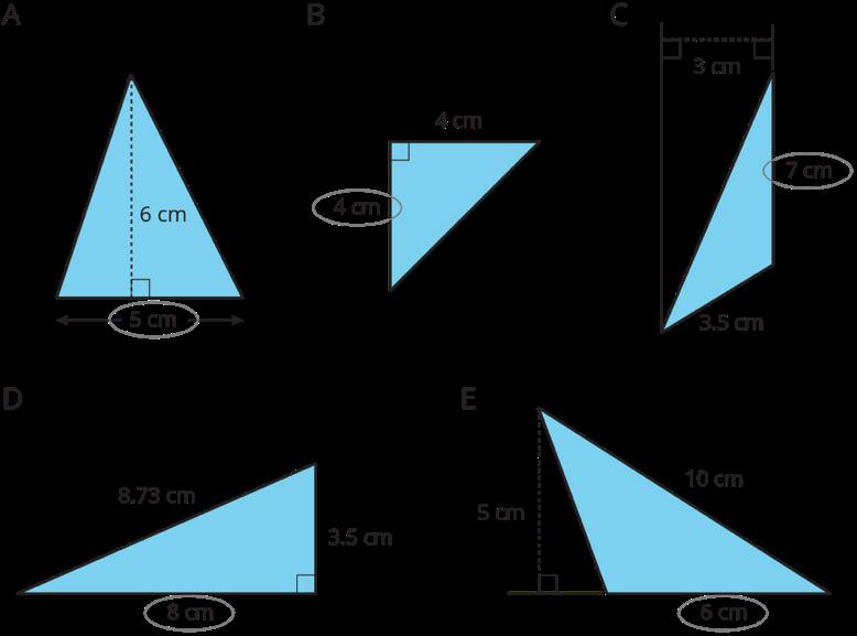 • cómo determinar el área de un triángulo con su base y altura (lección 9)