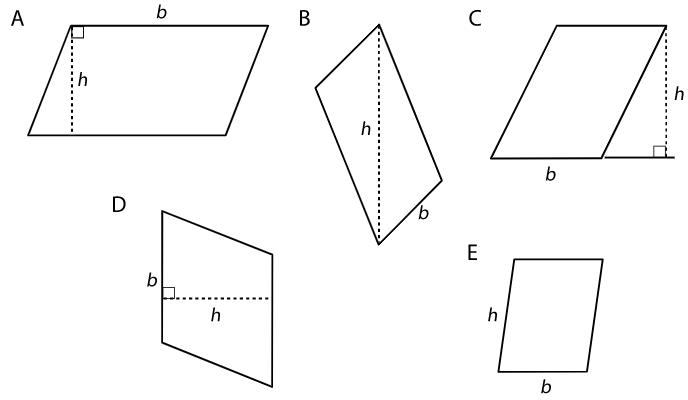 base (de un paralelogramo o triángulo) altura correspondiente expresión representar