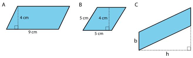 base (de un paralelogramo o triángulo) altura componer descomponer reordenar
