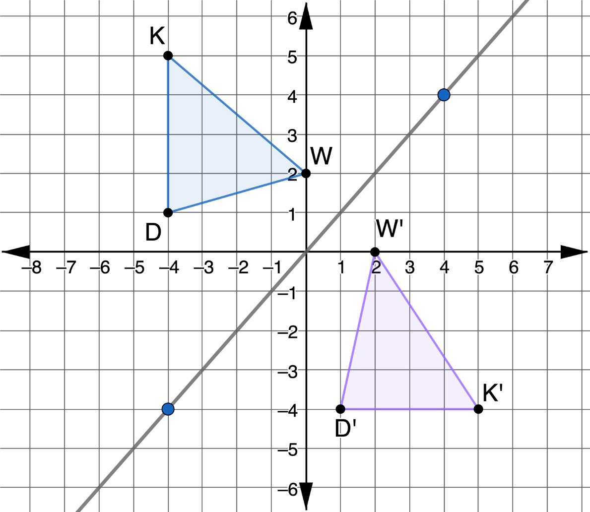 • The algebraic description for reflecting a point across the line y = x is (x, y) → (y, x).