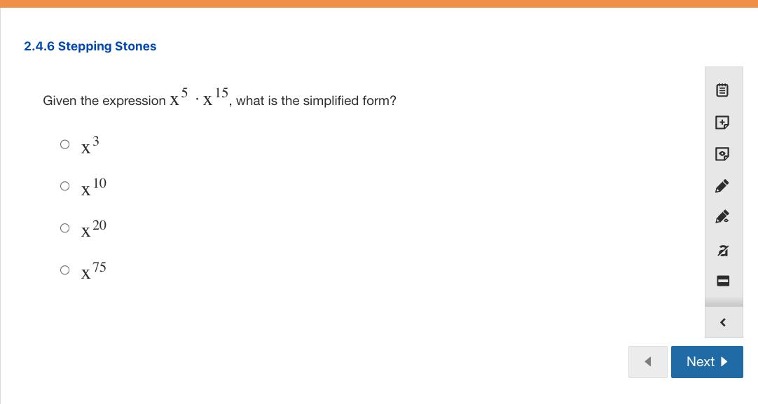Each lesson has a set of digital practice questions called Stepping Stones. These give students targeted practice that moves them toward mastery of lesson-level expectations. They can be used flexibly before or after the main lesson to reinforce understanding.