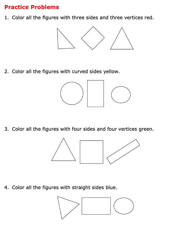 1. Color in all the figures that have 4 sides.