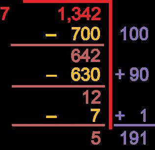 • The amount left over is the numerator, and the divisor, 5, is the denominator.