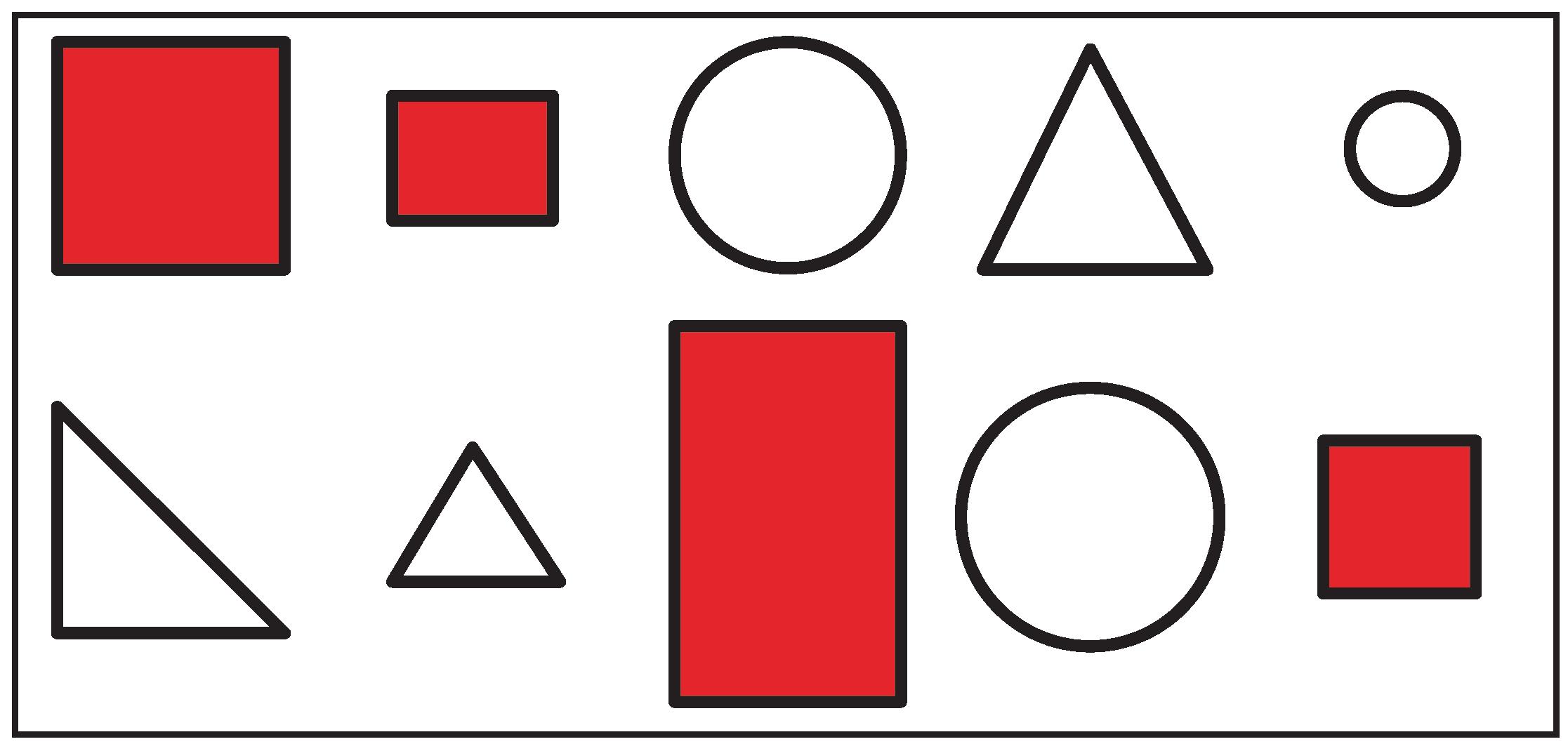 Draw the figures shown into two groups. Tell how you sorted the figures based on their attributes.