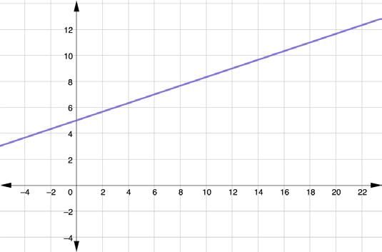 The graph has a slope of _____ and passes through the point (5, ____).