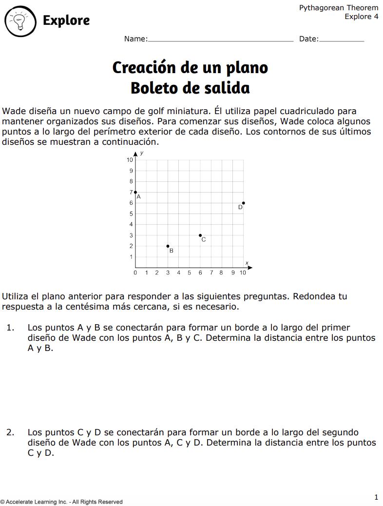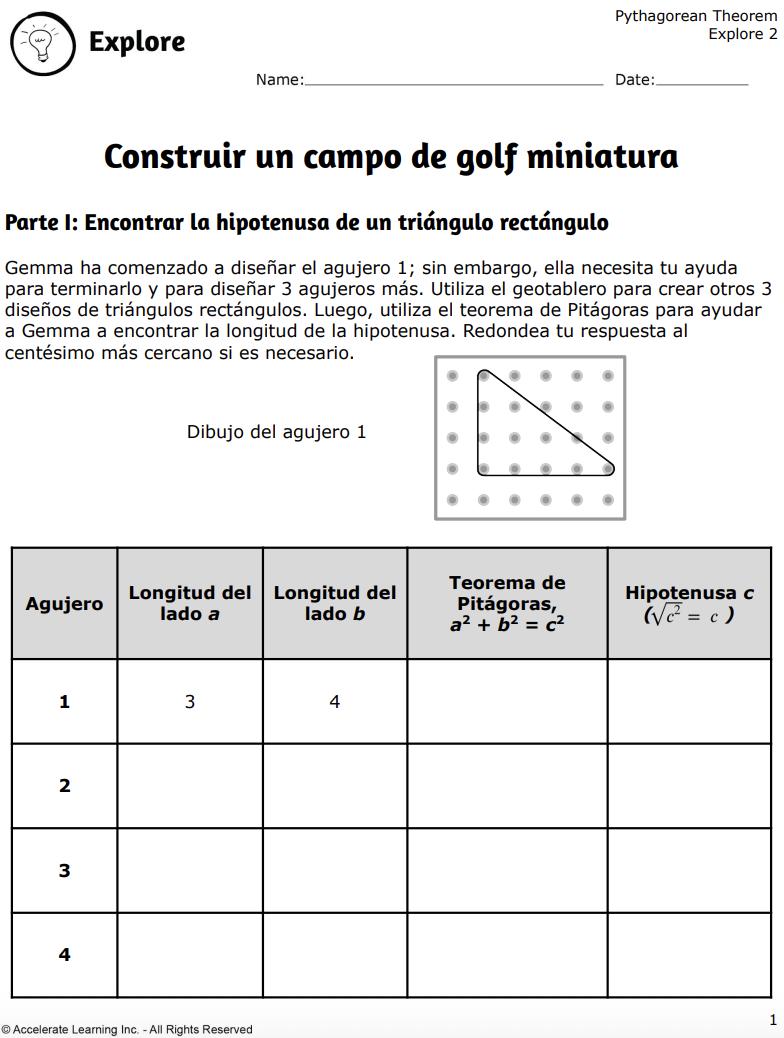 • Como ampliación, los estudiantes diseñan sus propios hoyos del campo de golf utilizando el teorema de Pitágoras para incorporar obstáculos y calcular distancias.