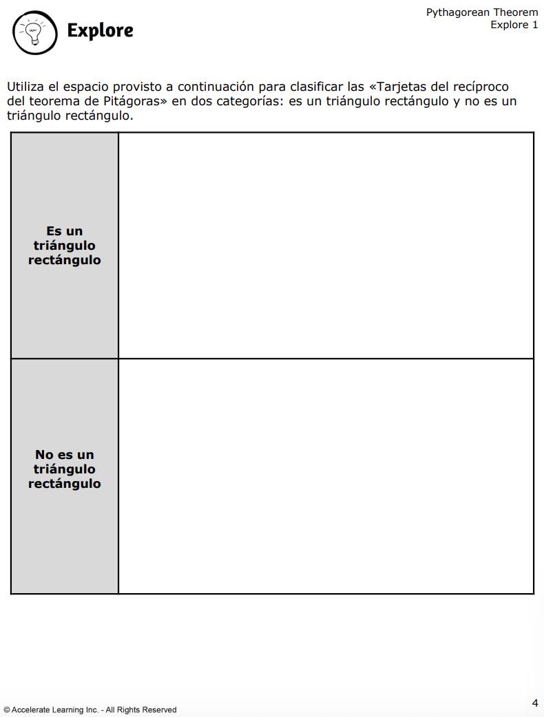Los estudiantes exploran el teorema de Pitágoras a partir de la representación y la aplicación prácticas. Trabajarán en parejas para profundizar su comprensión de los triángulos rectángulos y el recíproco del teorema.