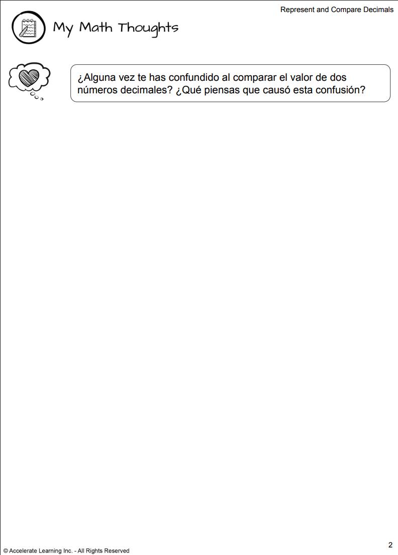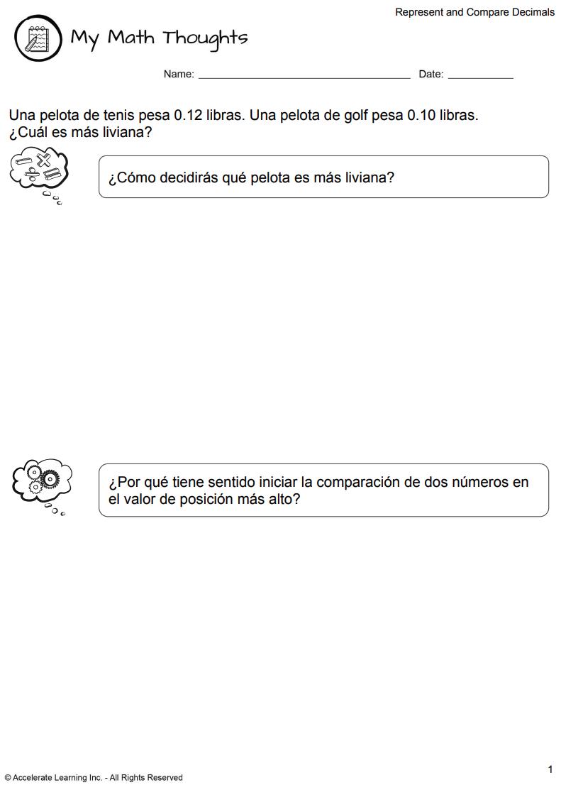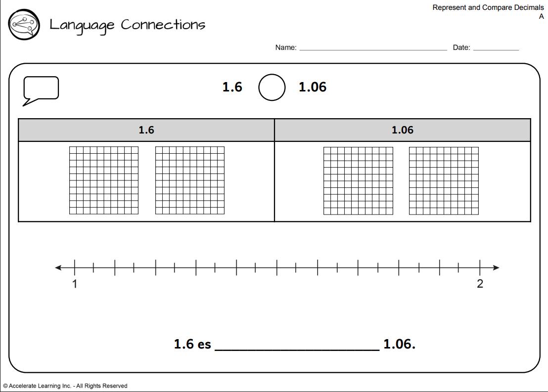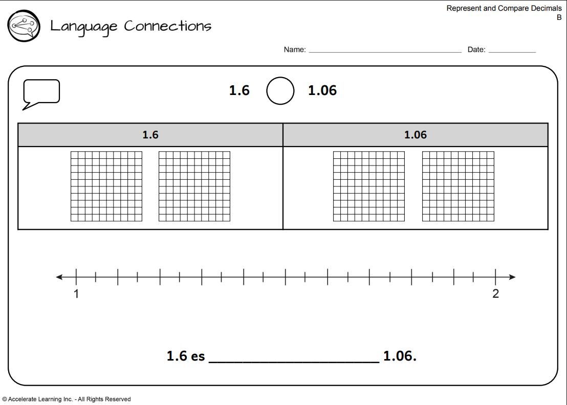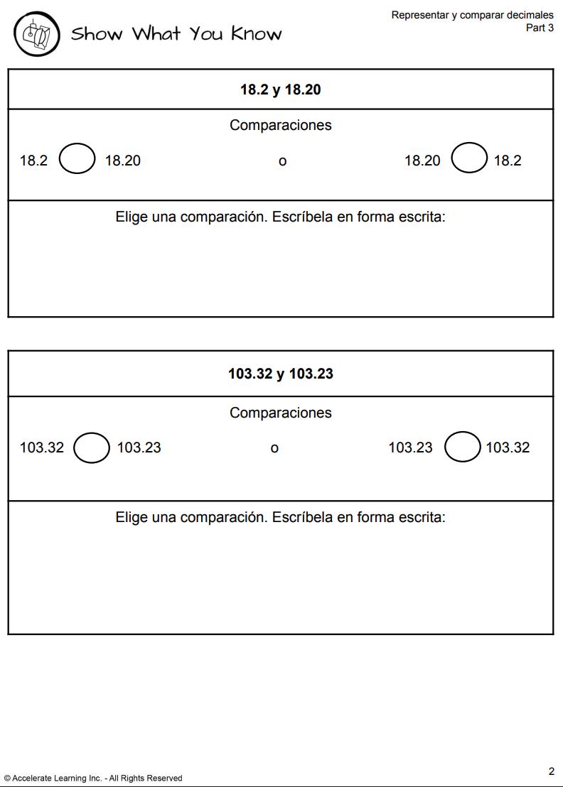 3. Repita el cuestionamiento y el razonamiento para desafiar a los estudiantes a comparar otros pares de decimales.