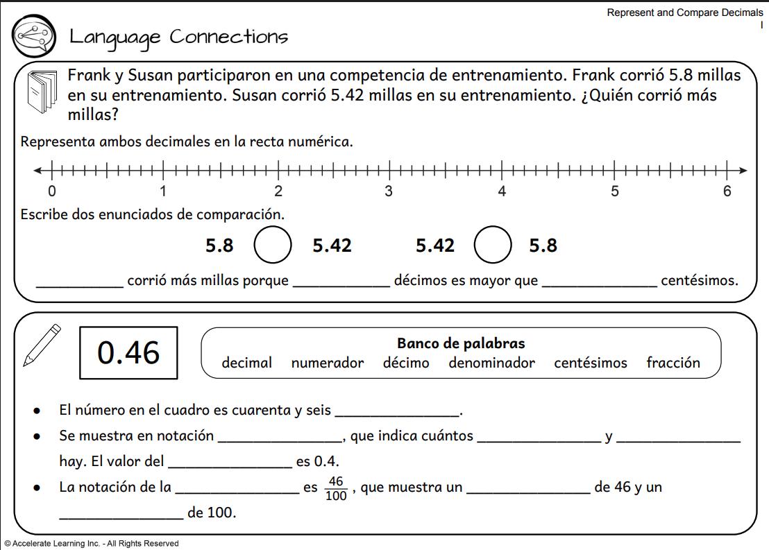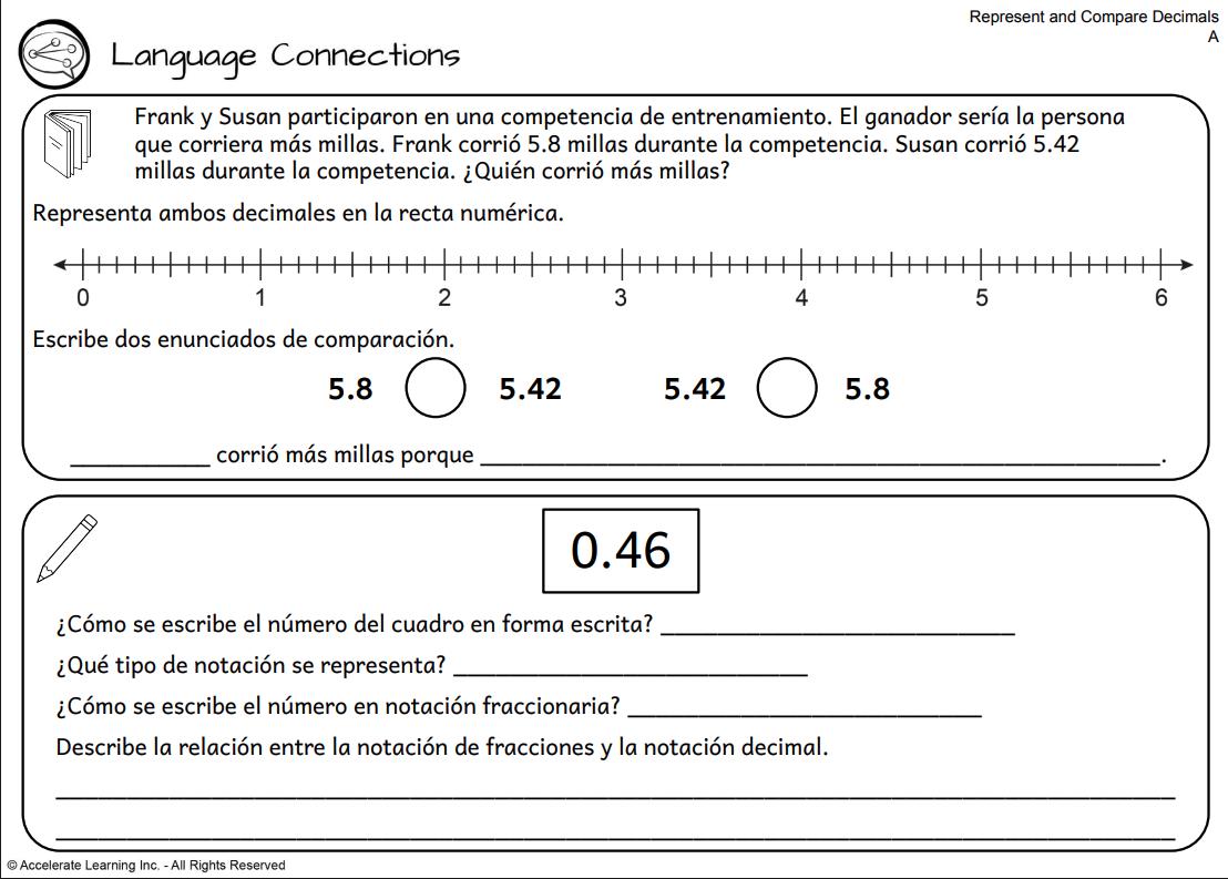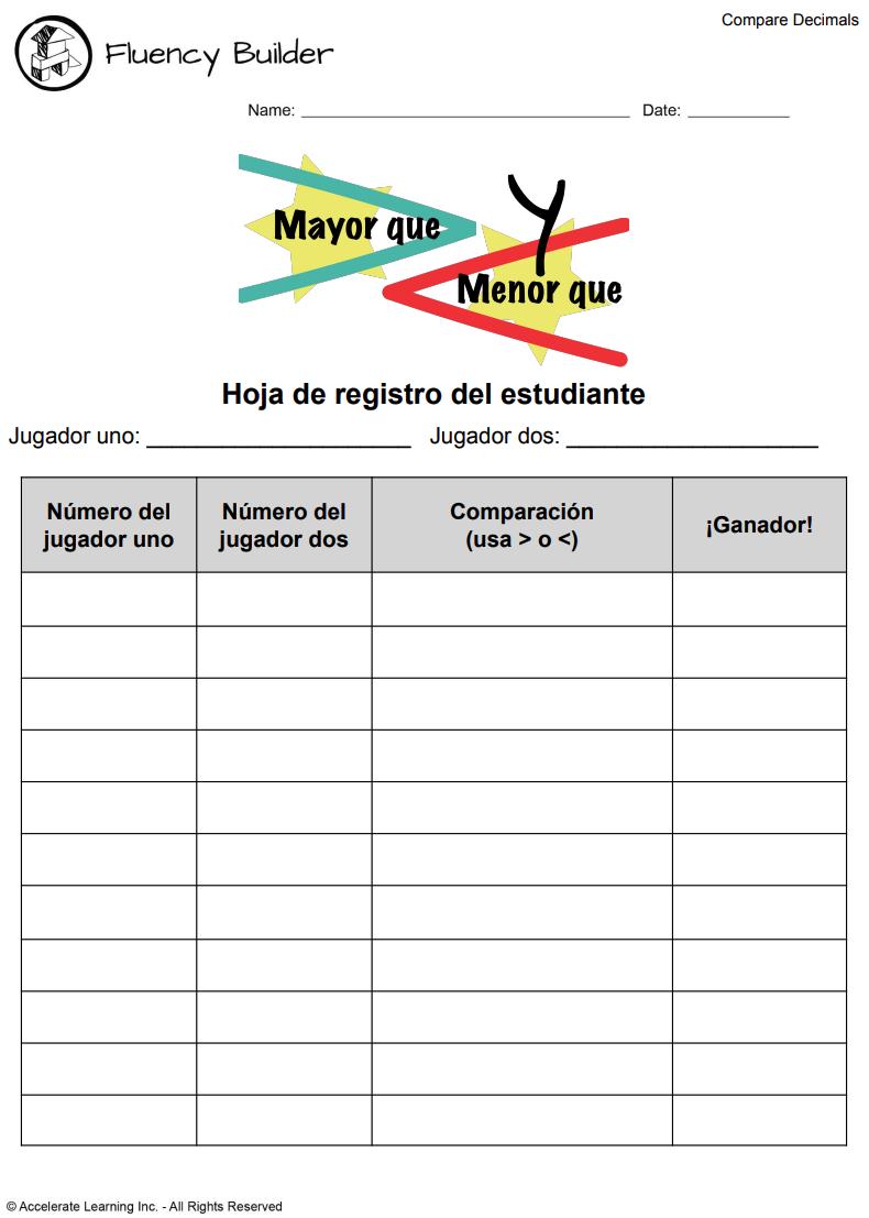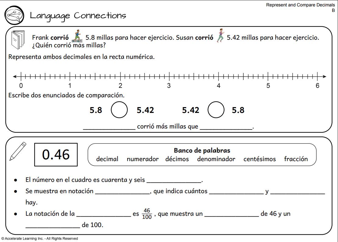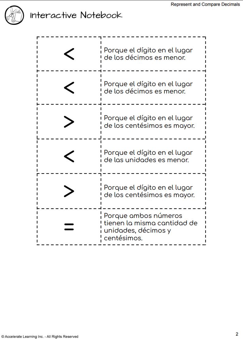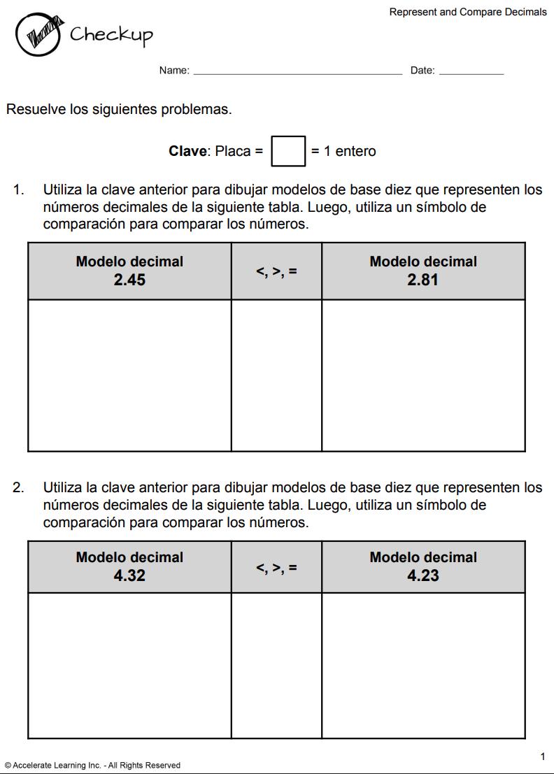 3. Repita el cuestionamiento y el razonamiento para desafiar a los estudiantes a comparar otros pares de decimales.