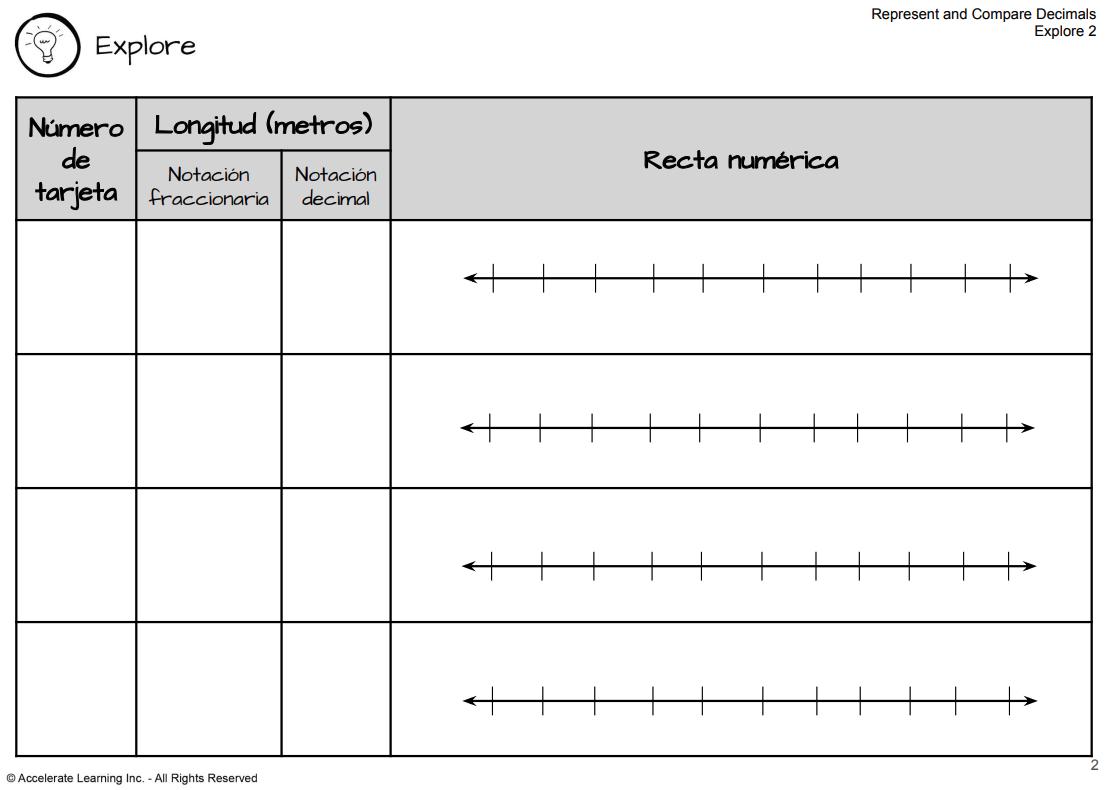 • Crean rectas numéricas para representar visualmente las medidas, mejorando su comprensión de la colocación y el valor de los decimales.
