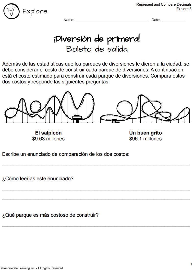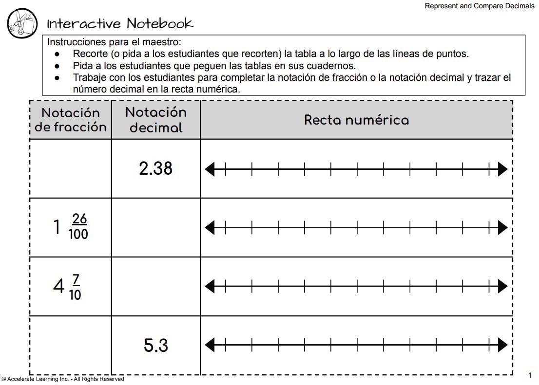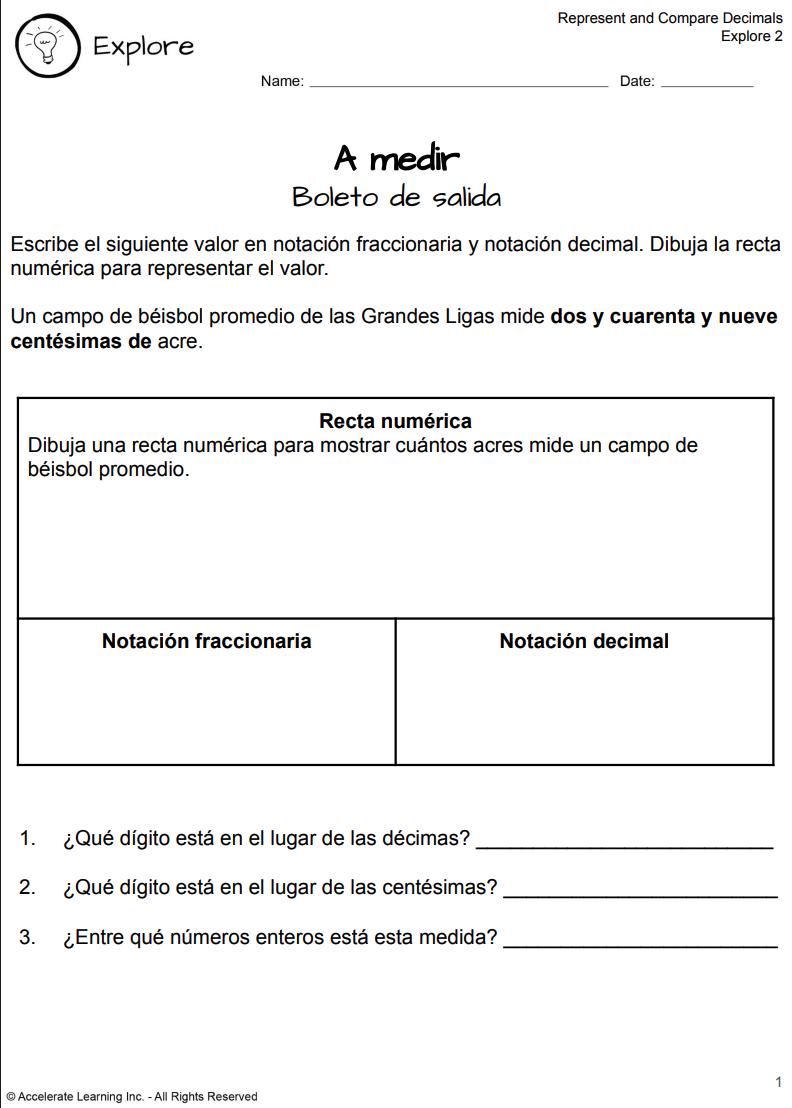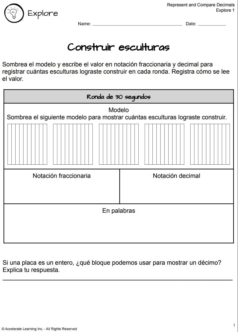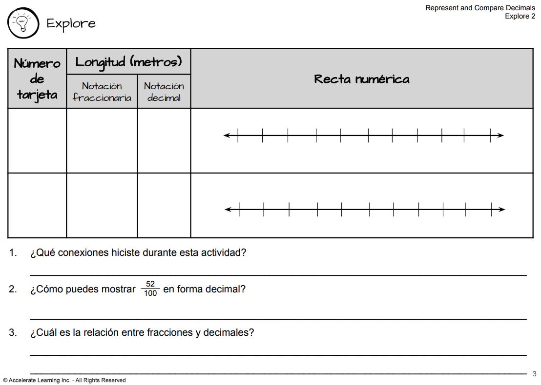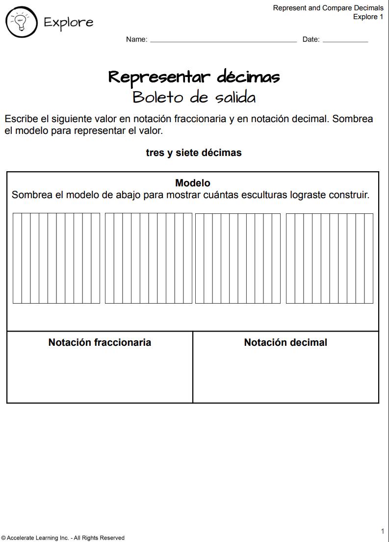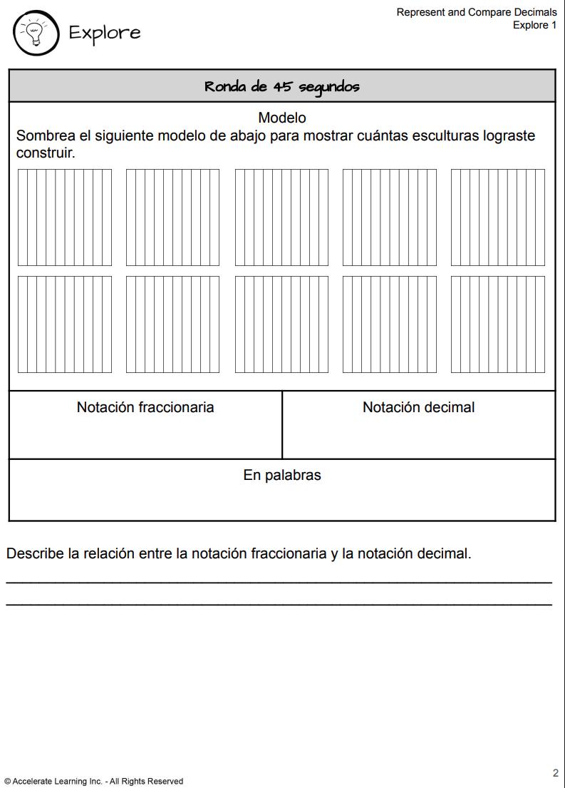 • Comenzar la «Exploración 1: Notación decimal para los denominadores de 10».