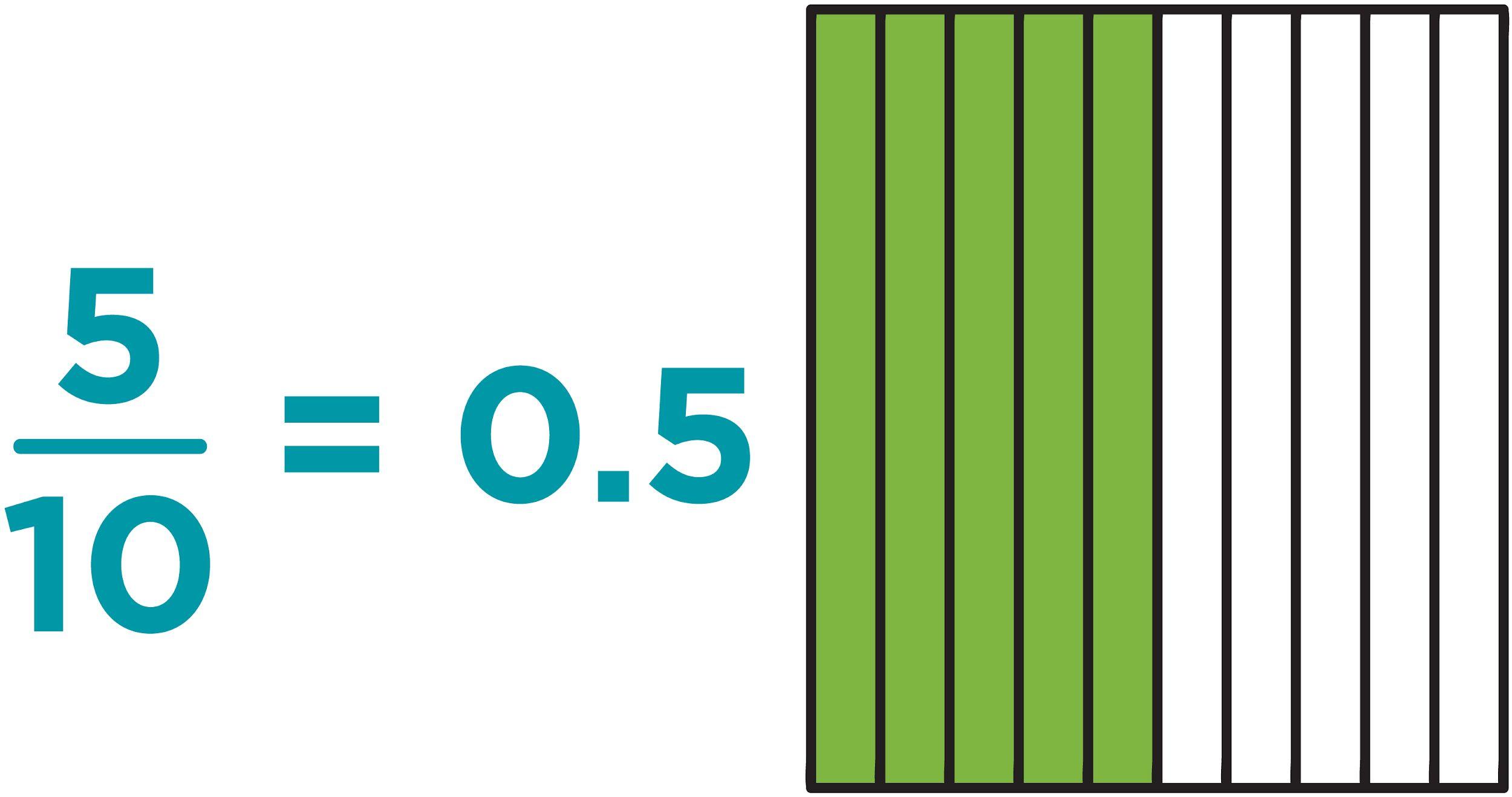 7. Haga hincapié en la relación entre las décimas y las partes de un todo.