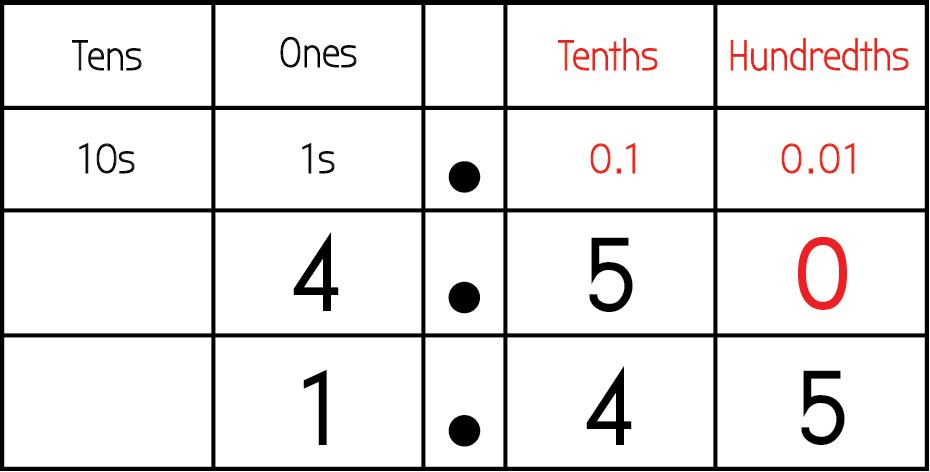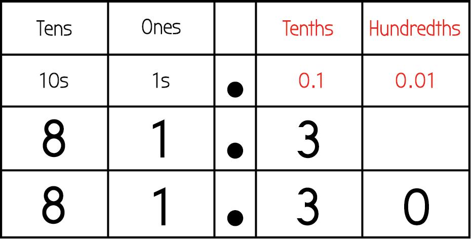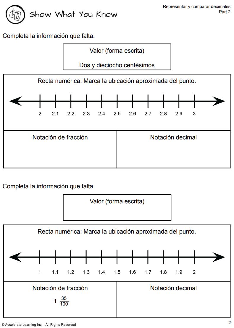 4. Explica que el segundo decimal a la derecha del decimal es la centésima. Haga las siguientes preguntas:
