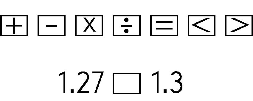 1. Pide a los estudiantes que escriban el símbolo de menor que en sus pizarras. Se muestran ejemplos de la recta numérica y del modelo de base diez.