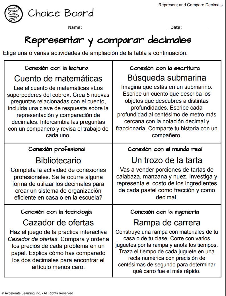 4. Si el tiempo lo permite, pida a los estudiantes que compartan las conexiones que hicieron al completar las actividades que eligieron.
