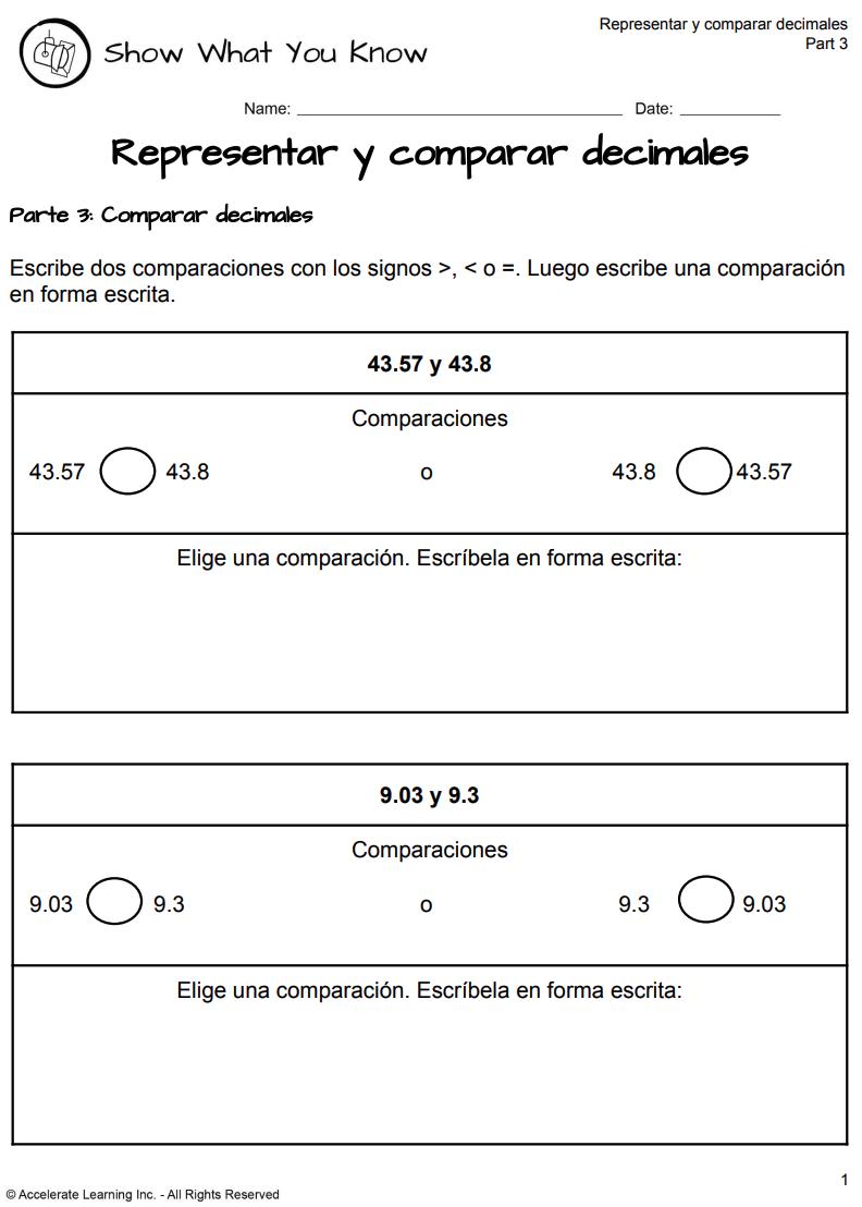 PARTE III: REPRESENTAR Y COMPARAR DECIMALES