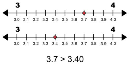 b. ¿Cambia la comparación cuando comparamos decimales en lugar de números enteros? No debería ser diferente. Sigue habiendo decimales que son mayores o menores que otros decimales.