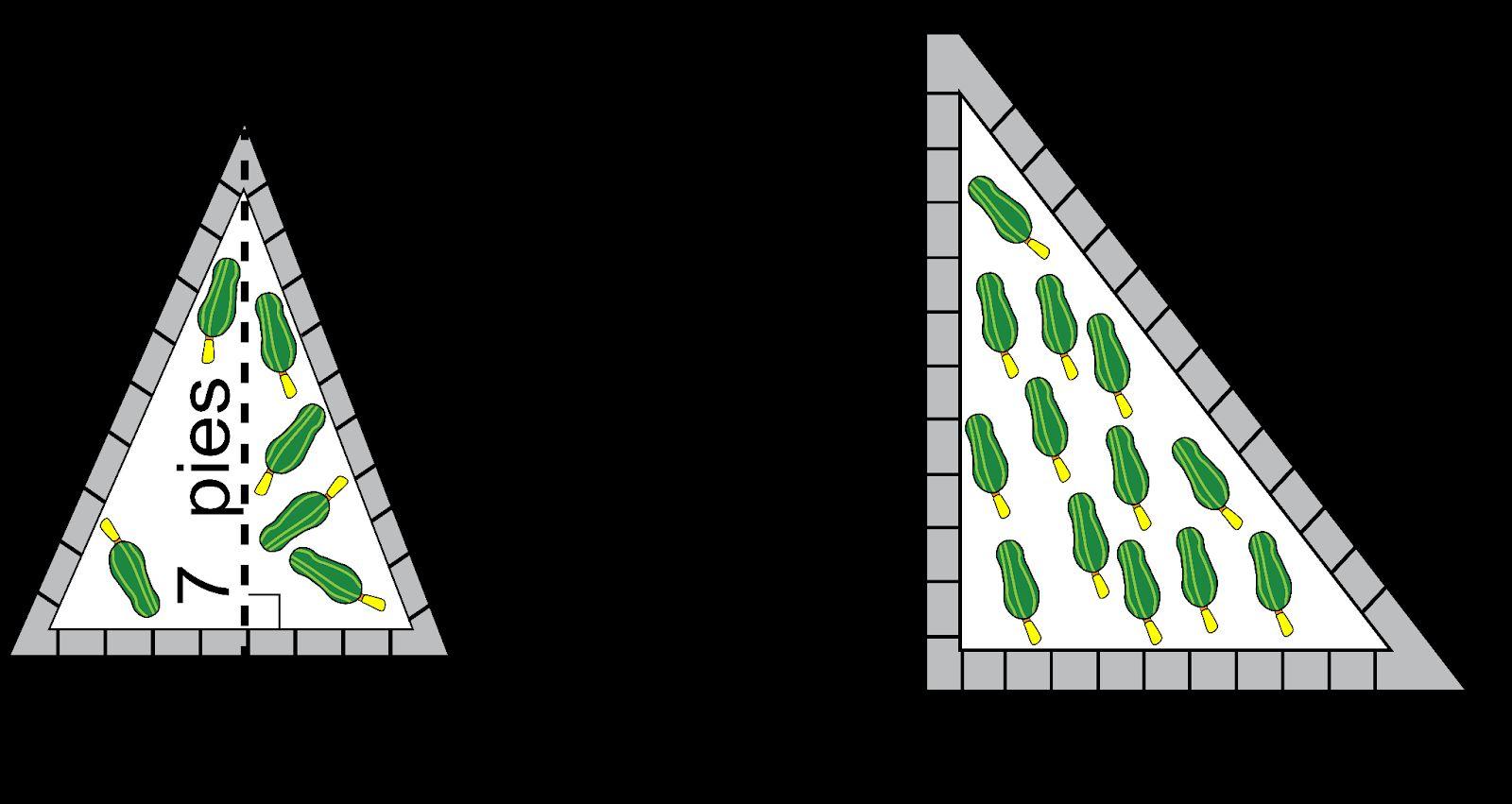 • Aplican la fórmula del área de un triángulo para calcular el área de jardines sin utilizar una cuadrícula.