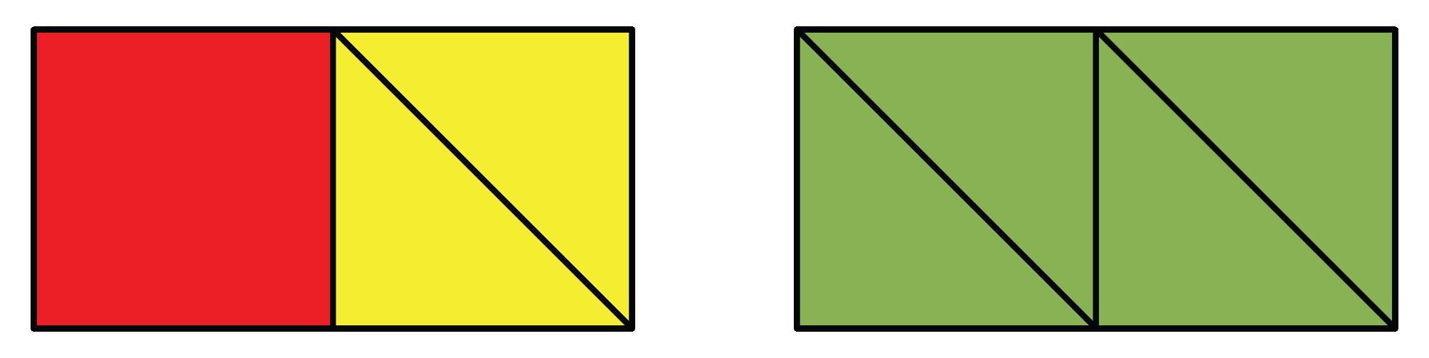 Los estudiantes de sexto grado siguen entendiendo el área como el número de cuadrados necesarios para cubrir una figura plana. Encuentran las áreas de triángulos rectángulos, otros triángulos y cuadriláteros especiales descomponiendo estas figuras, reorganizando las piezas y relacionando las figuras con rectángulos. A medida que los estudiantes componen y descomponen formas para determinar áreas, aprenden que el área se conserva. Por ej., los estudiantes descompondrán trapecios en triángulos y/o rectángulos y utilizarán este razonamiento para obtener fórmulas del área de un trapecio. Los estudiantes hallarán el volumen de un prisma rectangular recto con longitudes de arista fraccionarias empaquetándolo con cubos unitarios de las longitudes de arista fraccionarias unitarias apropiadas y demostrarán que el volumen es el mismo que se hallaría multiplicando las longitudes de arista del prisma.