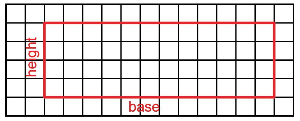 • área: el número de unidades cuadradas que se necesitan para cubrir la superficie bidimensional de un objeto.