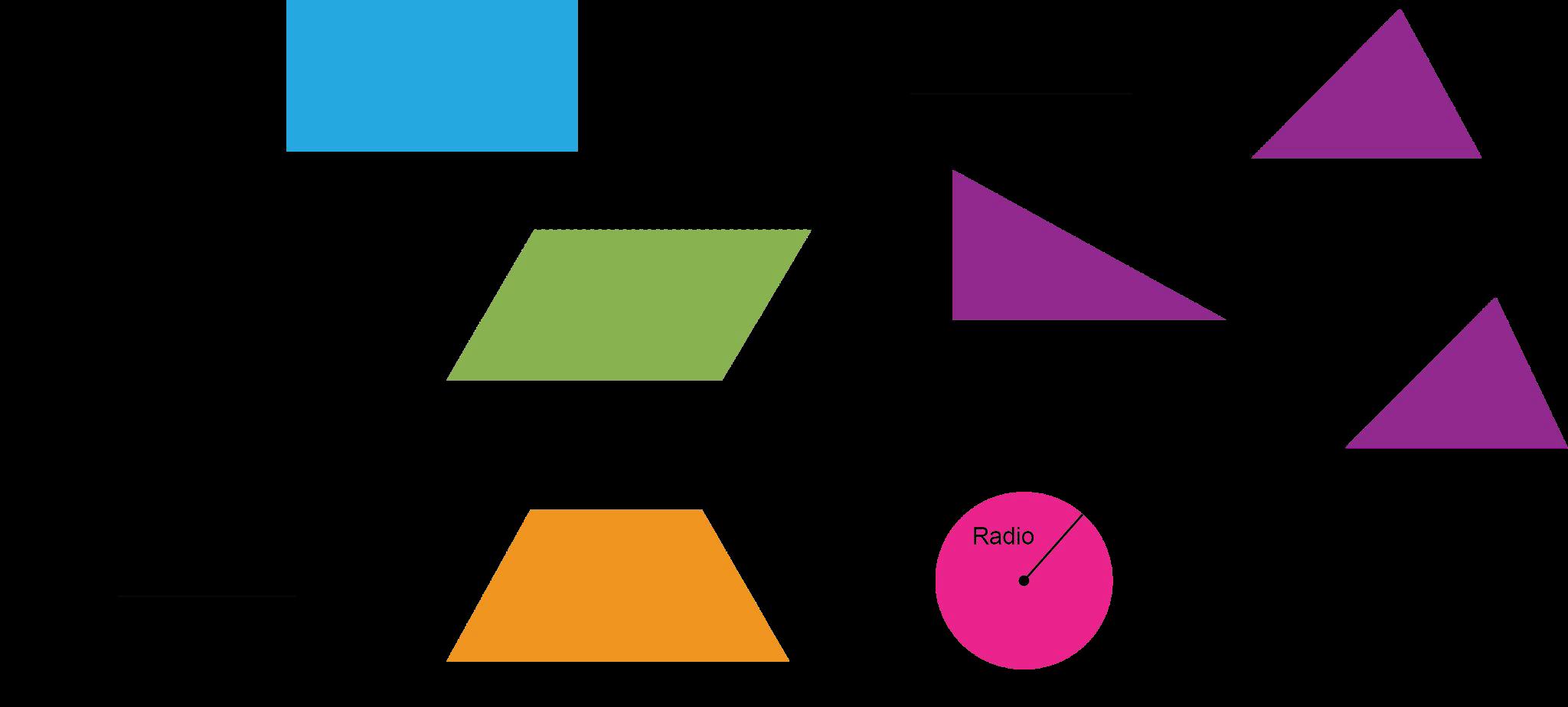 • Identificar las fórmulas para el área de triángulos, cuadriláteros, trapezoides y paralelogramos.