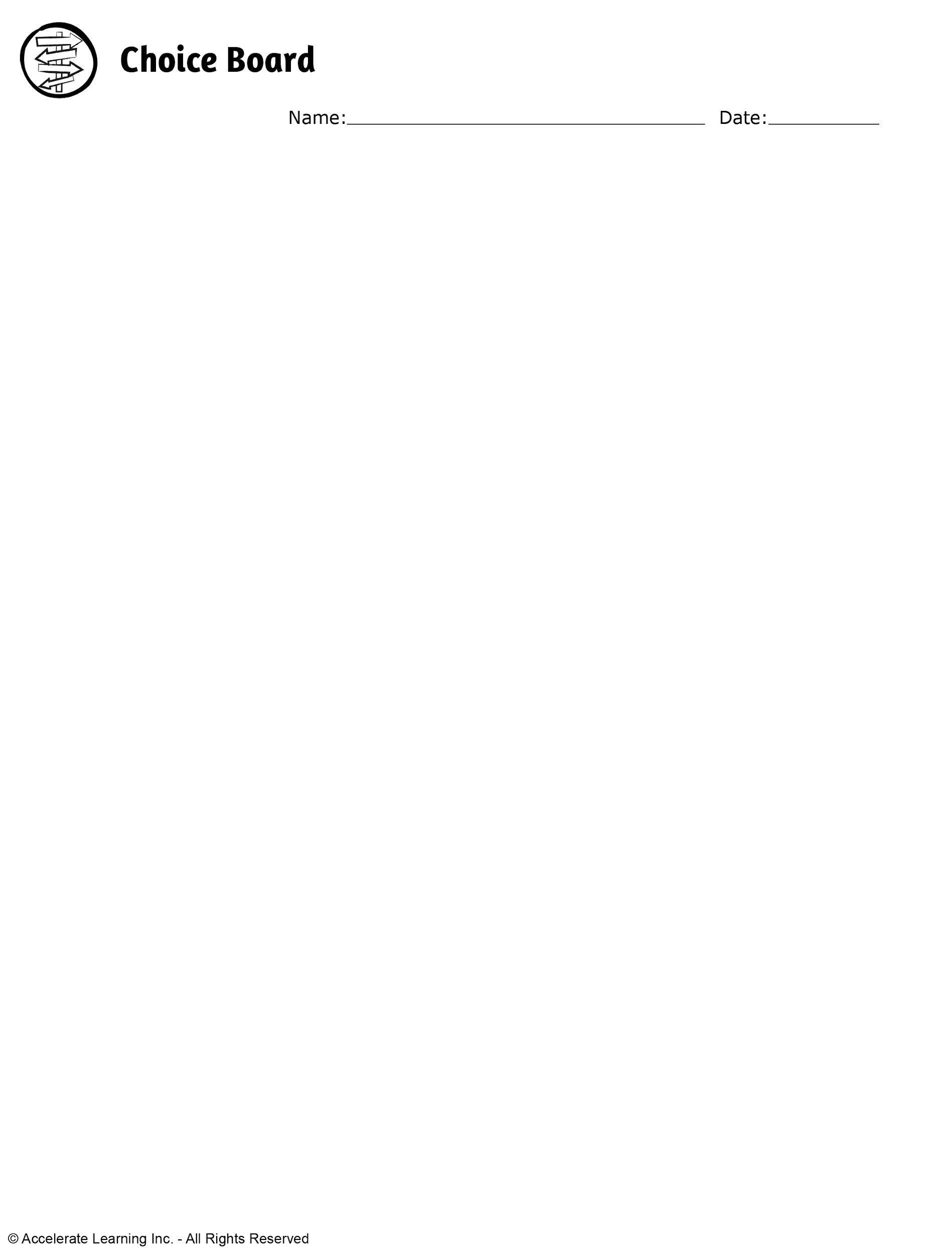 • Imprima un tablero de elección y un juego de hojas de actividades para cada estudiante.