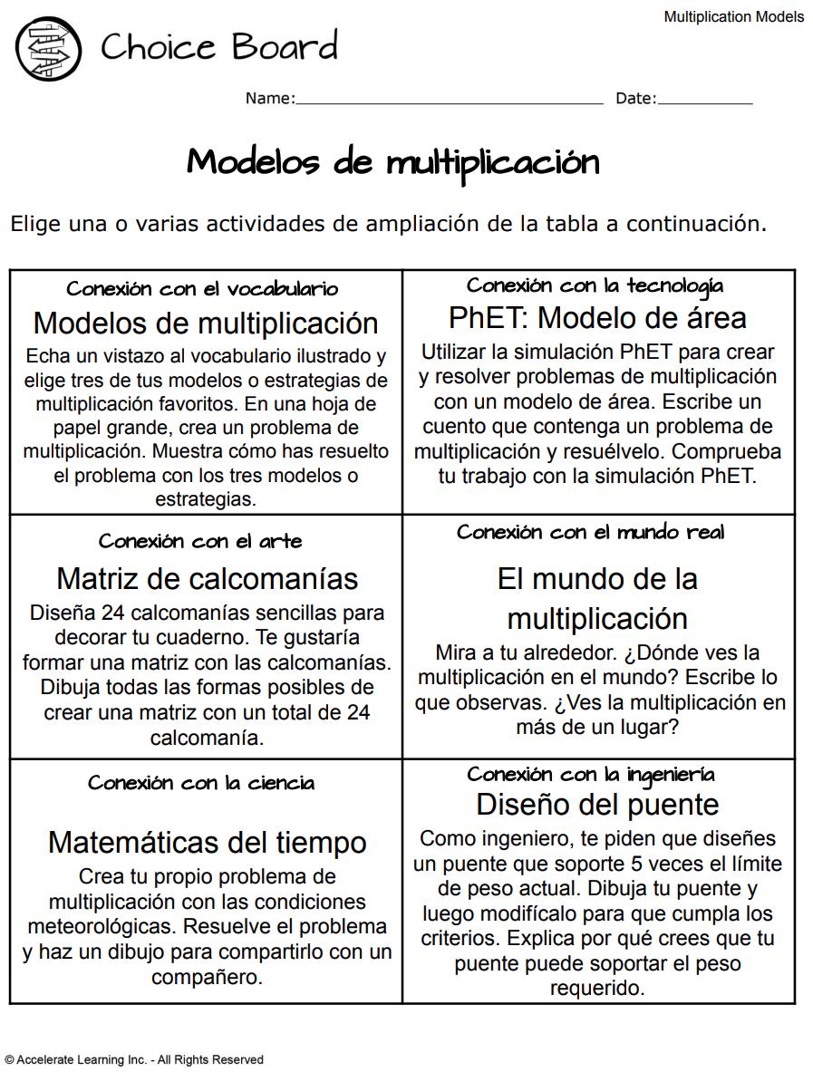 4. Si el tiempo lo permite, pida a los estudiantes que compartan las conexiones que hicieron al completar las actividades que eligieron.