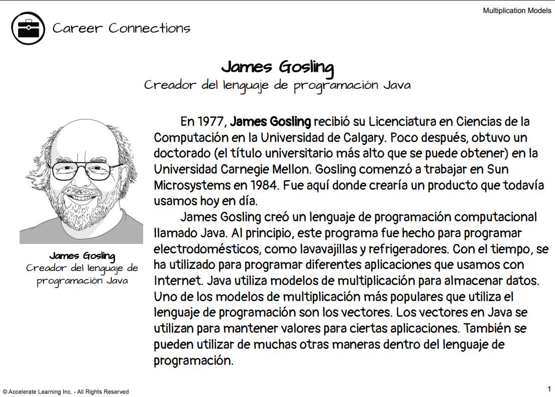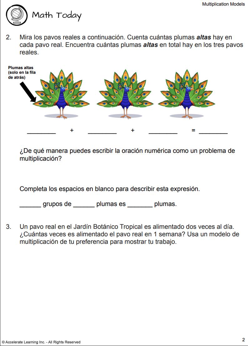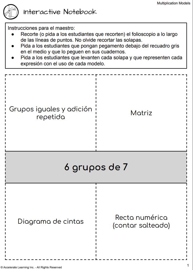 • Interpretar productos de números enteros, por ej., interpretar 5 × 7 como el número total de objetos en 5 grupos de 7 objetos cada uno. Por ej., describir un contexto en el que un número total de objetos pueda expresarse como 5 × 7. Por ej., describir un contexto en el que un número total de objetos pueda expresarse como 5 × 7.