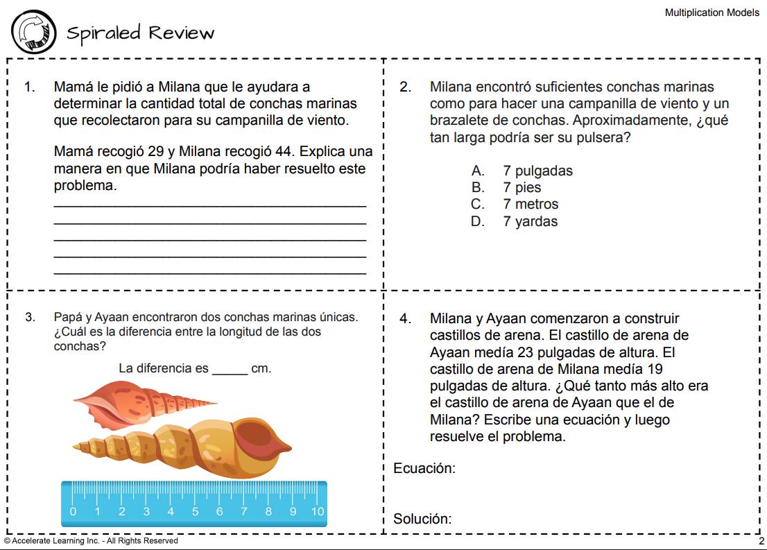 El alcance y la secuencia sugeridos para cada grado se basan en un calendario escolar de 180 días. La progresión natural de las matemáticas fue el factor más importante a la hora de determinar el orden de los alcances. ¿Tiene su propio alcance y secuencia? No hay problema. Enseñe los alcances en cualquier orden para satisfacer las necesidades de los estudiantes en su aula. Las únicas actividades afectadas son la «Revisión en espiral» y las «Evaluaciones de referencia».