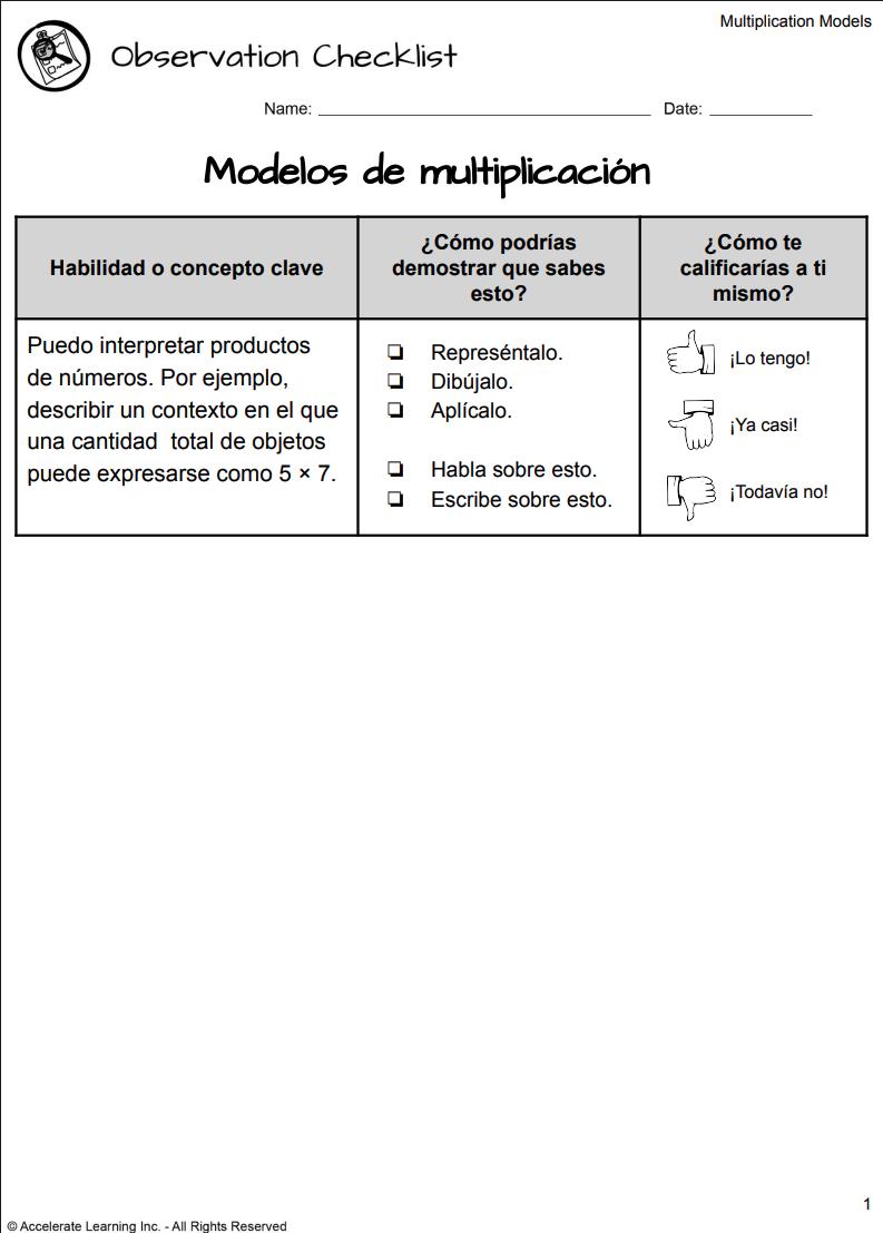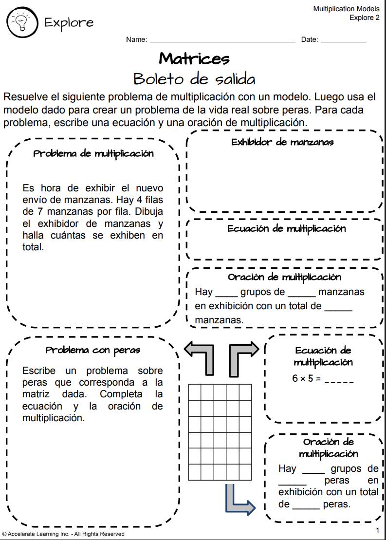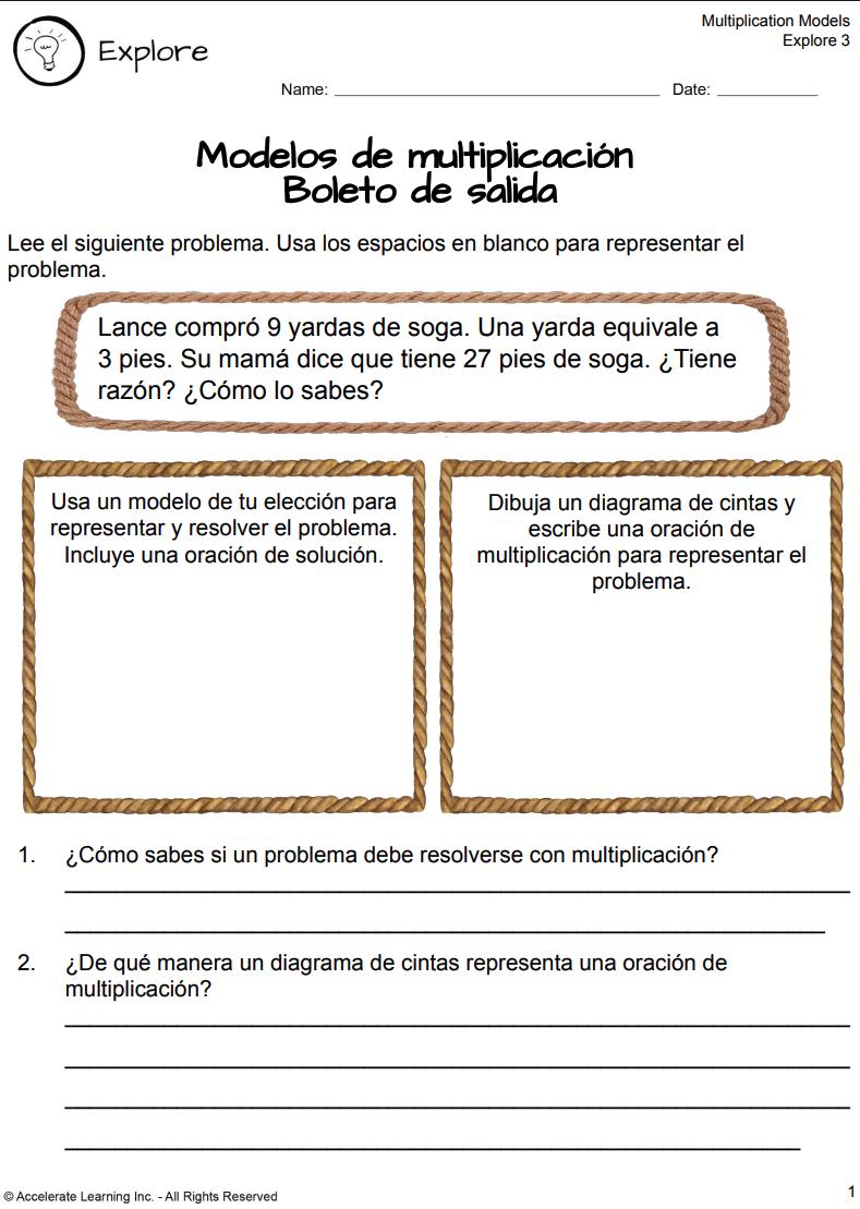 • Se utiliza un boleto de salida para evaluar la comprensión de los estudiantes de los conceptos de multiplicación explorados.