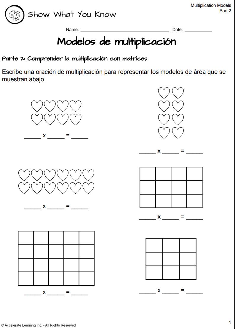 • Puedo usar las palabras producto y factor para describir la multiplicación.