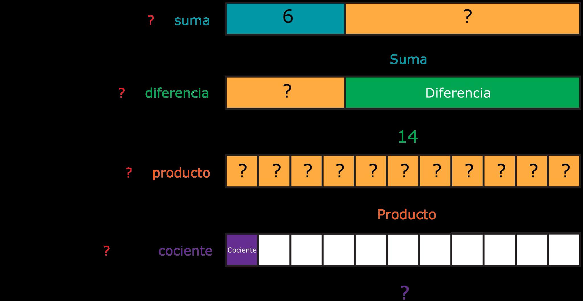 • Puedo encontrar los productos de números con imágenes, objetos, palabras, números y ecuaciones.