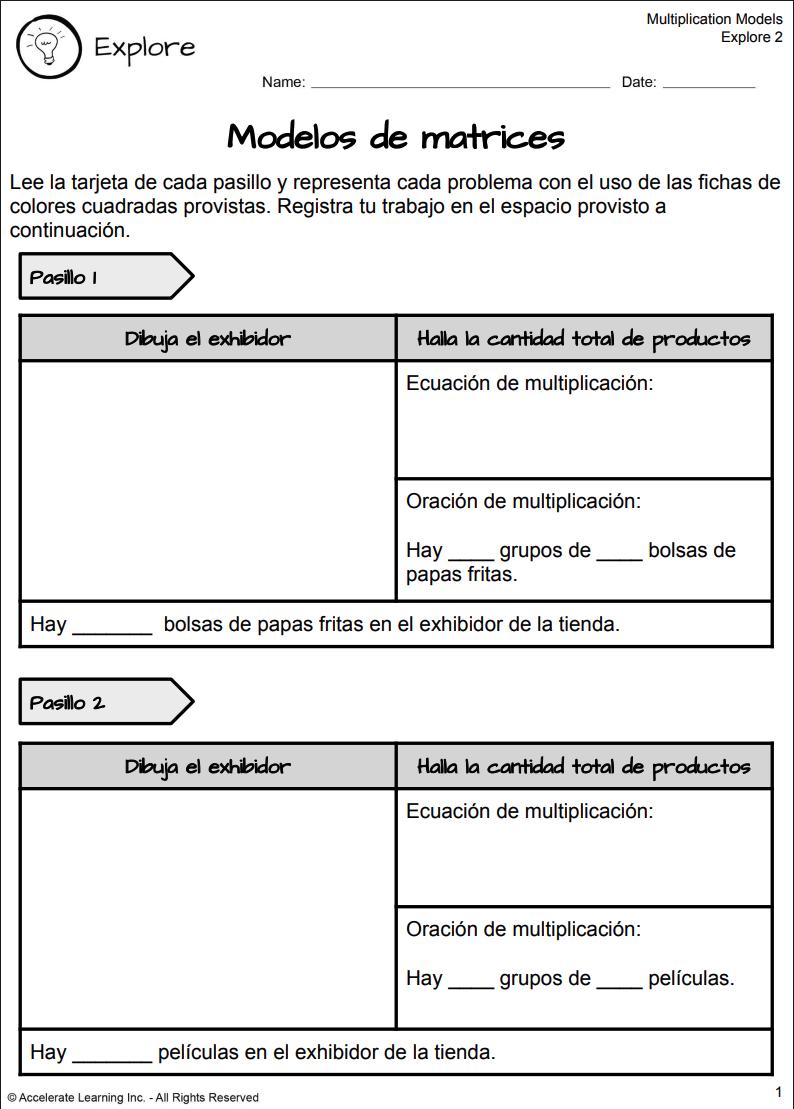 4. Los estudiantes deben completar la hoja del estudiante de forma independiente o con un compañero.