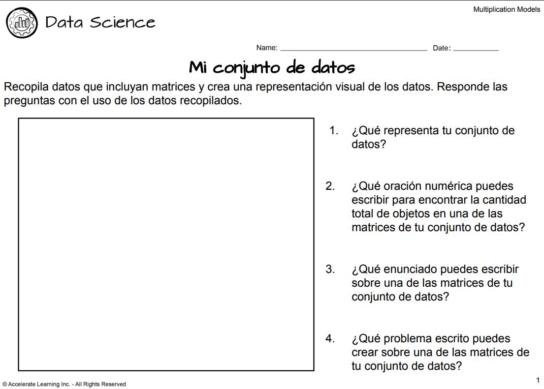 Los estudiantes exploran la multiplicación a través del uso de matrices para determinar el número total de objetos en un escenario dado.