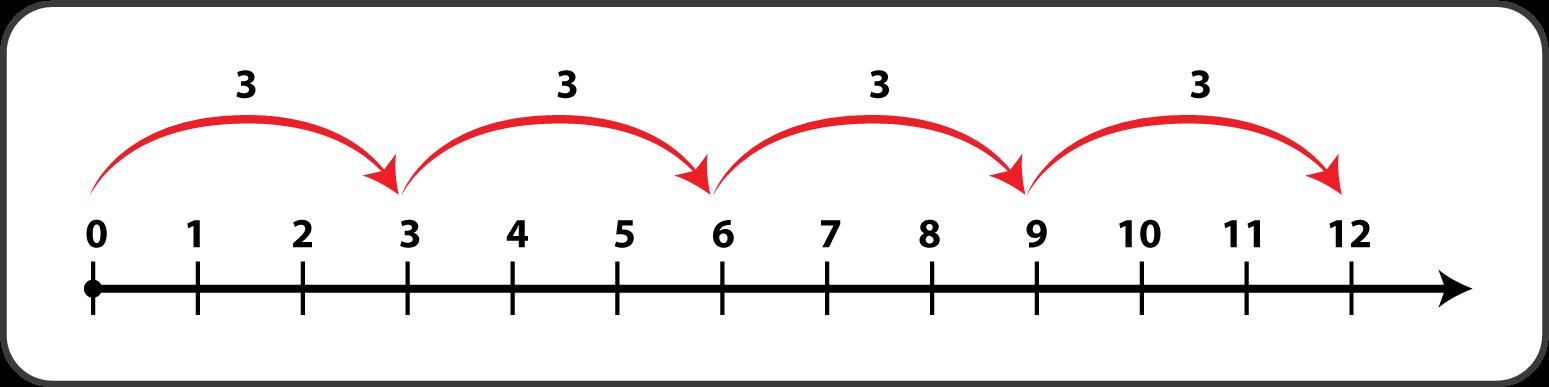 b. «¿Cómo podemos mostrar la multiplicación en una recta numérica?». Los factores de una oración de multiplicación nos dicen cuántas veces estamos saltando (el primer factor) y por qué número estamos saltando o saltando la cuenta (el segundo factor). Cada salto en la recta numérica es como un grupo igual.