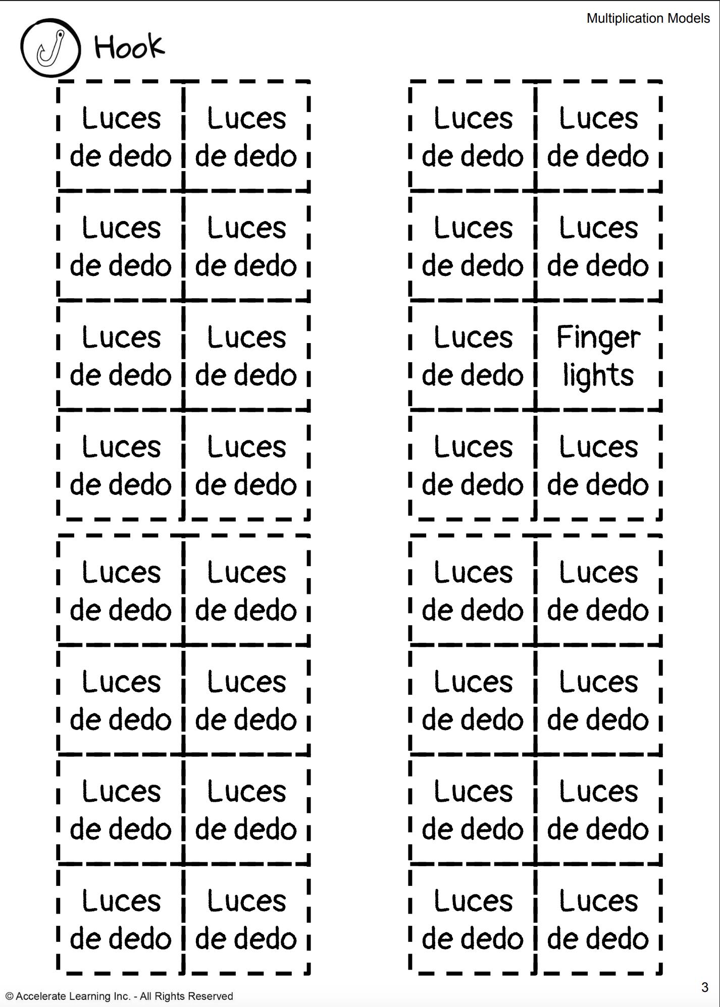 4. Explique a los estudiantes que trabajarán con diagramas de cinta y un escenario con partes faltantes. Darán vuelta dos números para representar el escenario y lo resolverán con una estrategia de multiplicación.