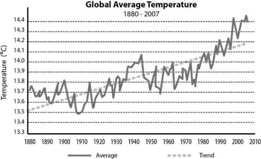 global warming –continuing rise in the average temperature of Earth’s climate system