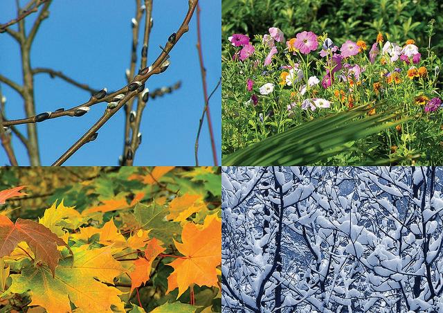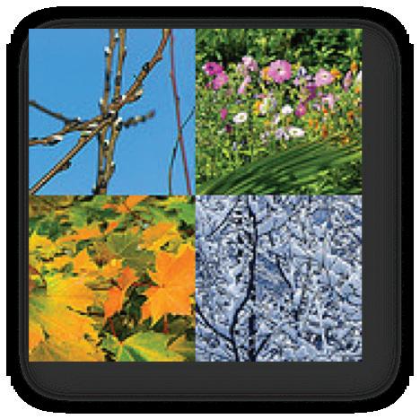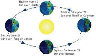 seasons – the four natural divisions of the year based on changes in temperature due to the varied amounts of sunlight (both intensity and number of daylight hours received); caused by the tilt of Earth during revolution