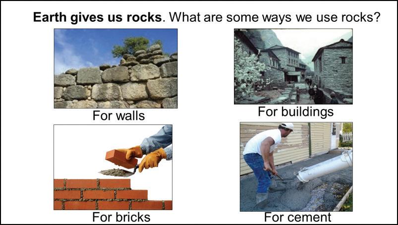 3. Rocks are used to build many things. Draw a picture showing how rocks are used to build something. Write an explanation of your drawing.