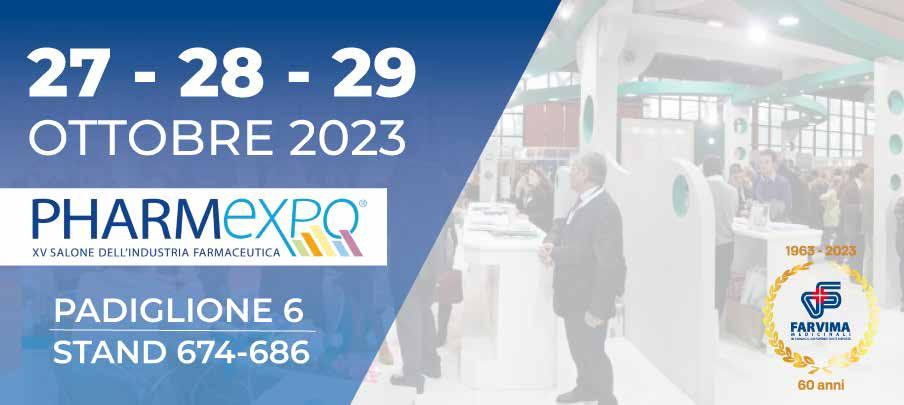 PHARMEVOLUTION Taormina 01 DAL 13 AL 15 OTTOBRE COSMOFARMA Bologna 03 DAL 19 AL 21 APRILE 2024 PHARMEXPO Napoli 02 DAL 27 AL 29 OTTOBRE FARMACIA n.103 ottobre - novembre - dicembre 2023 “Distribuzione gratutita per le farmacie” *990000099*