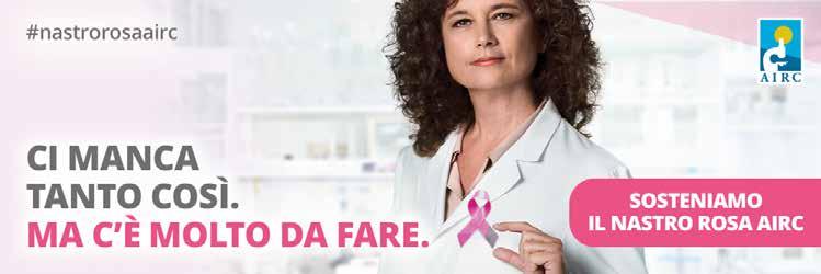 Concludo con una menzione ad un’iniziativa che mi sta molto a cuore. Anche quest’anno il Nostro Gruppo ha sostenuto la Fondazione AIRC offrendo un capillare servizio logistico a titolo gratuito per la distribuzione dei Nastri Rosa in farmacia.