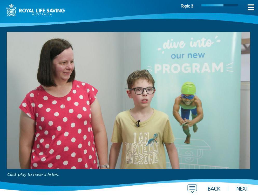 Throughout the module there are interviews with children on the spectrum that are learning to swim, their parents or carers and their swim teachers.