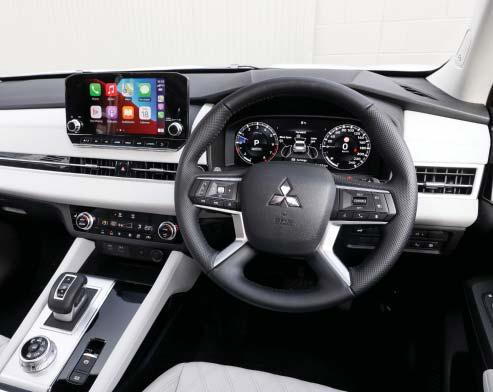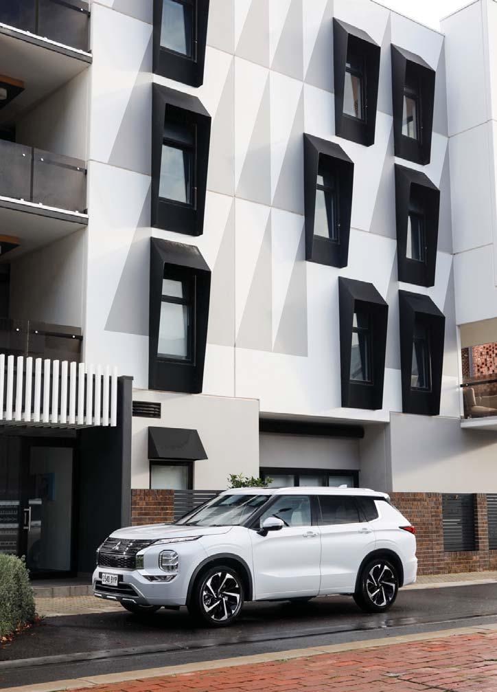 In addition to the extra surety of the allwheel-drive system – on some variants – all Outlanders come with the latest suite of airbags and driver assist systems including driver att ention alert, forward collision mitigation with cyclist detection and junction assist, blind spot warning with brake assist, emergency lane change alert with brake assist, trailer stability assist, lane departure warning and lane departure prevention with more features added at each trim level.