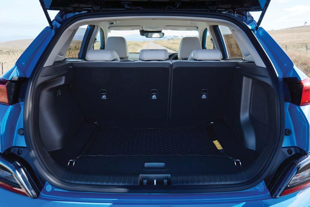Standard safety tech on all Kona Electrics is accounted for by the SmartSense suite, comprising of blind-spot collision-avoidance assist, driver att ention warning, forward collision-avoidance assist, lane following assist, lane-keeping assist, rear cross-traffi c collision avoidance assist, rear occupant alert, safe exit warning and adaptive cruise control.