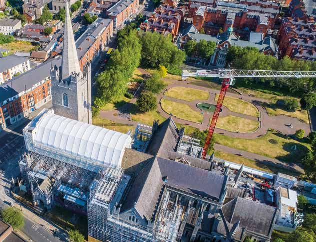 AccessPoint issue 12 featured the impressive mobile roof scaffolding in place to assist the renovation of St Patrick’s Cathedral in Dublin. Here is an update in pictures…